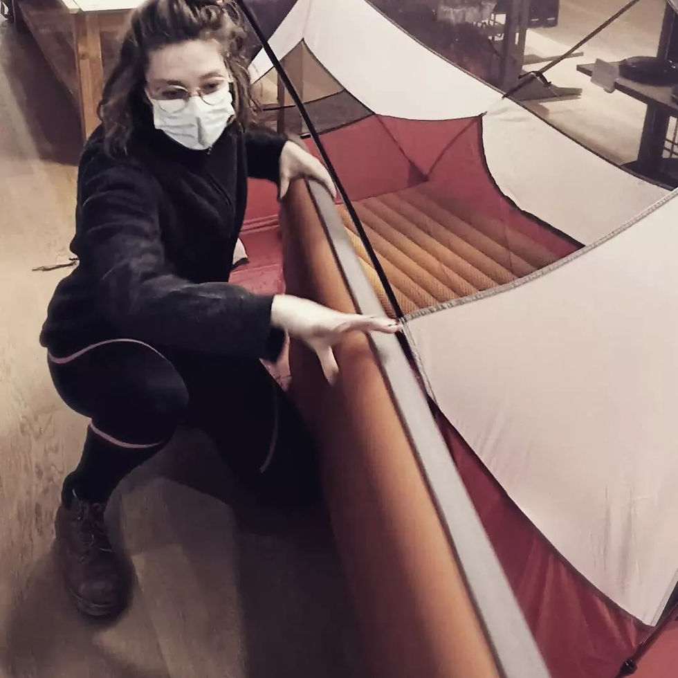 Ich gebe mir etwas Bedenkzeit und wir kümmern uns erst einmal um unser Zelt. Dazu haben wir schon einiges recherchiert und von Freunden Tipps bekommen. Die Entscheidung blieb somit zwischen dem MSR Freelite und dem Hubba Hubba - Achtung, nicht zu verwechseln mit dem Kaugummi Hubba Bubba. Zack bekommen wir beide Zelte in die Hand gedrückt und bauen das Hubba Hubba auch gleich im Laden auf. Mit den davor ausgewählten Mätteli, die geradeso nebeneinander Platz haben, liegen wir im Laden und starren durch das Mesh an die Decke. Zählt das jetzt eigentlich als unsere erste gemeinsame Wohnung? Naja, über das können wir später noch philosophieren. Denn wir haben Huuuuunger! - Uuui, wie sich das auf der Reise entwickeln wird, wenn wir beide hungrig werden. Darüber werden wir vielleicht auch noch berichten. Oder auch nicht. Jetzt zuerst alles bezahlen und dann etwas Essen, denn wir sind schon seit einer gefühlten Ewigkeit im Sportladen.